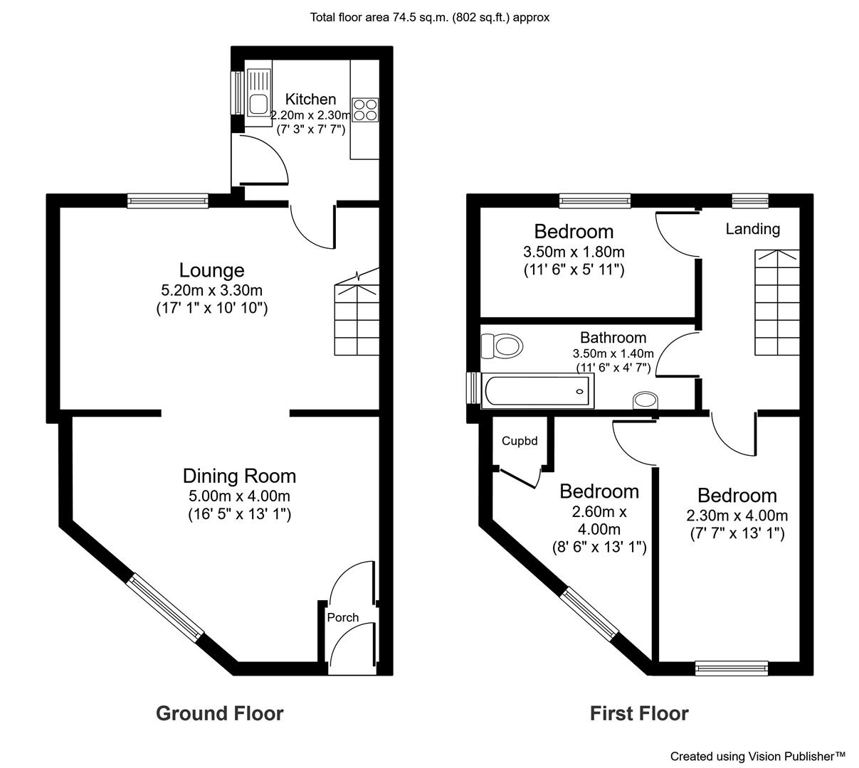 3.50m x 1.80m (11'5" x 5'10" )